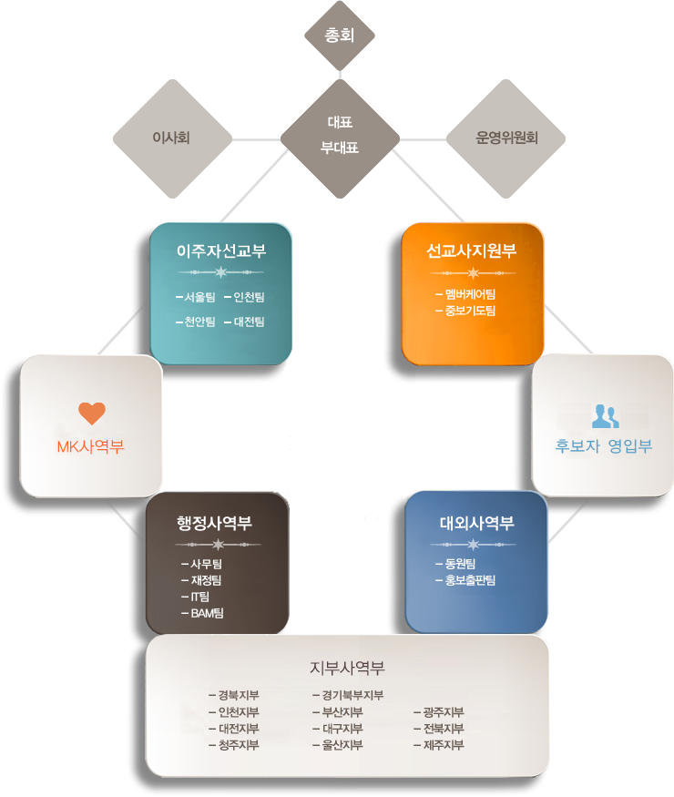 - 부산지부 이사장: 김기봉/강수진( 온사커뮤니티교회 담임목사)